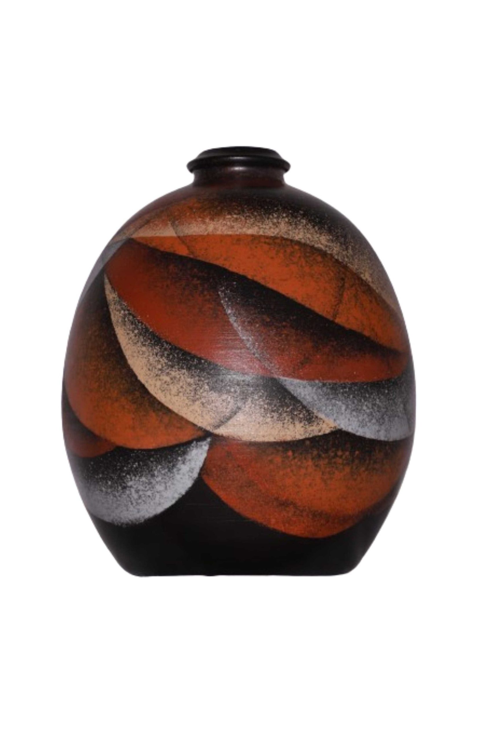 vaso con colori sfumati sul nero, rosso, arancione e bianco